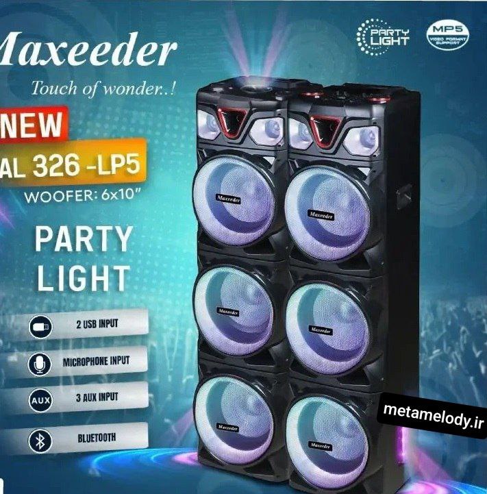 اسپیکر خانگی مکسیدر MAXEEDER مدل AL 326-LP5 با ترکیبی منحصربهفرد از قدرت صدا، نورپردازی جذاب و امکانات چندگانه، یک انتخاب هوشمندانه برای کسانی است که به دنبال یک سیستم صوتی کامل و حرفهای برای منزل و مهمانیهای خود هستند. این اسپیکر با طراحی زیبا، کیفیت صدای عالی و قابلیتهای سرگرمکننده، تجربهای بینظیر از شنیدن موسیقی و ایجاد فضایی شاد را برای شما به ارمغان میآورد.