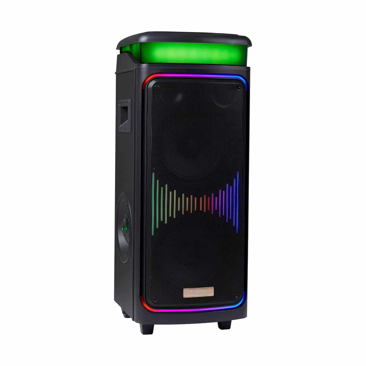 طراحی ظاهری اسپیکر شامل نورپردازی LED رقص نور، لایت بار و نور جانبی است که با ریتم موسیقی هماهنگ میشود و فضایی شاداب ایجاد میکند. این مدل با وجود باتری داخلی 12500 Ah و چرخ، برای حمل و استفاده در فضای باز ایدهآل است. پنل کنترلی شامل تنظیمات اکولایزر و میکروفون است و اسپیکر همراه با میکروفون بیسیم ارائه میشود.