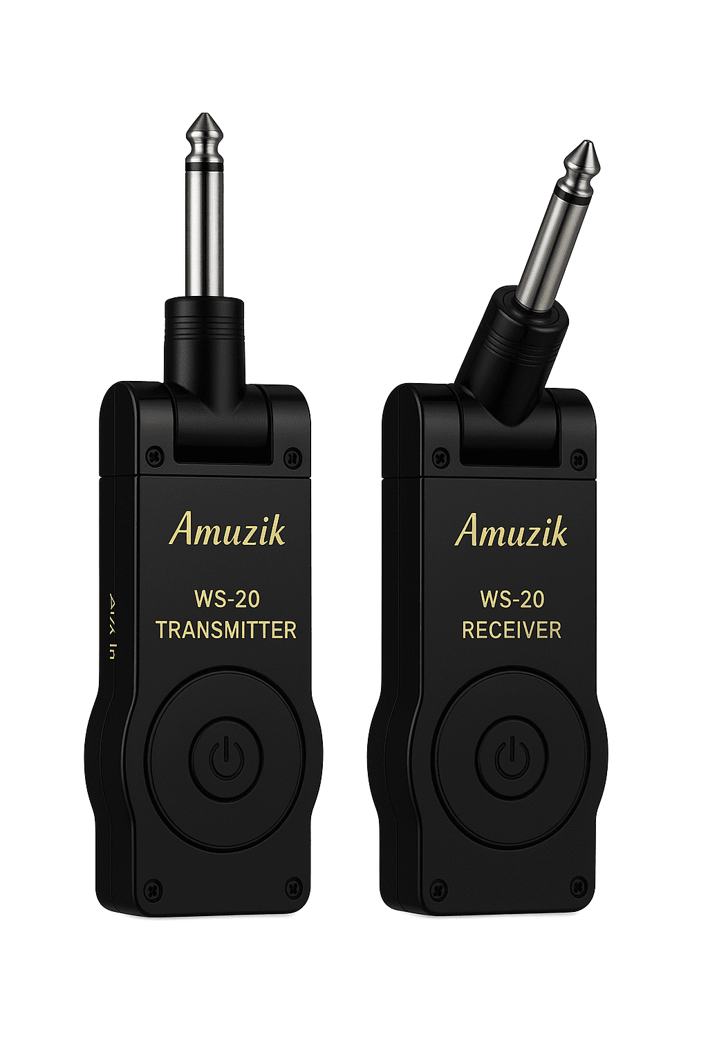 بی سیم کننده و مبدل گیتار و میکروفون Amuzik مدل WS-20 شامل یک فرستنده (Transmitter) و یک گیرنده (Receiver) است. هر دو واحد دارای جکهای استاندارد ۱/۴ اینچ (۶.۳۵ میلیمتر) هستند. این طراحی، اتصال مستقیم فرستنده به خروجی گیتار یا میکروفون (با استفاده از مبدل XLR/TS) و اتصال گیرنده به ورودی آمپلیفایر یا میکسر را امکانپذیر میسازد.