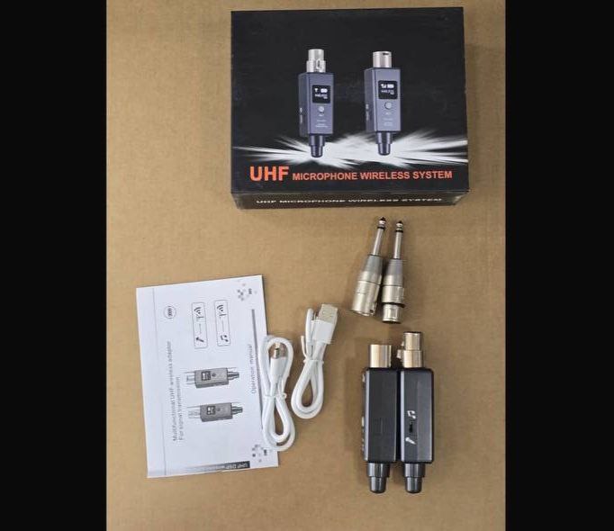 مبدل بی سیم کننده میکروفون UHF بافرستنده وگیرنده XLR مدل دوکاناله یک آداپتور پلاگ-آن حرفهای است. این دستگاه برای تبدیل میکروفونهای باسیم (مانند میکروفونهای داینامیک یا کاندنسر با ورودی XLR) به سیستمهای بیسیم طراحی شده است.