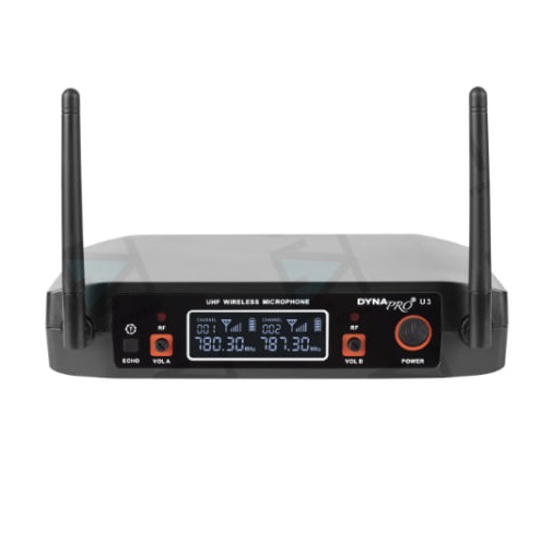 میکروفون بی سیم دایناپرو DYNAPRO (نیوساند) مدل U3 یک سیستم میکروفون بیسیم دو کاناله دستی است که برای کاربردهای مختلفی از جمله اجرای زنده، سخنرانیها، مراسم مذهبی و آموزشی مناسب است. این میکروفون با استفاده از فناوری فرکانس رادیویی VHF، صدایی شفاف و با کیفیت را ارائه میدهد.