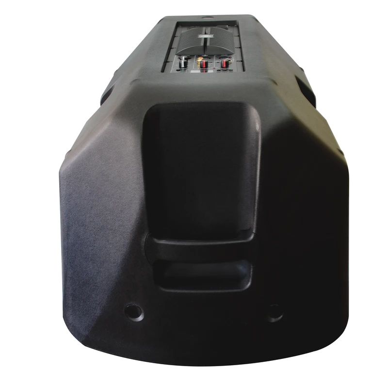 - طراحی مقاوم و قابل حمل: بدنه مقاوم و مستحکم از جنس فایبرگلاس، از بلندگو در برابر آسیبهای احتمالی محافظت میکند. همچنین دارای دستگیرههای ارگونومیک برای حمل و نقل آسان میباشد.