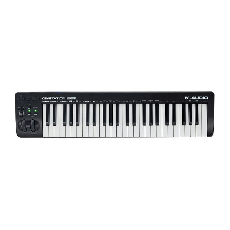 میدی کنترلر M-AUDIO مدل KEYSTATION 49 یک کیبورد کنترلر USB است که برای تولید موسیقی، آهنگسازی و اجرای زنده طراحی شده است. این میدی کنترلر با 49 کلاویه حساس به velocity، به شما امکان میدهد تا به راحتی نتها، آکوردها و سایر اطلاعات MIDI را به نرمافزار آهنگسازی (DAW) خود ارسال کنید.
